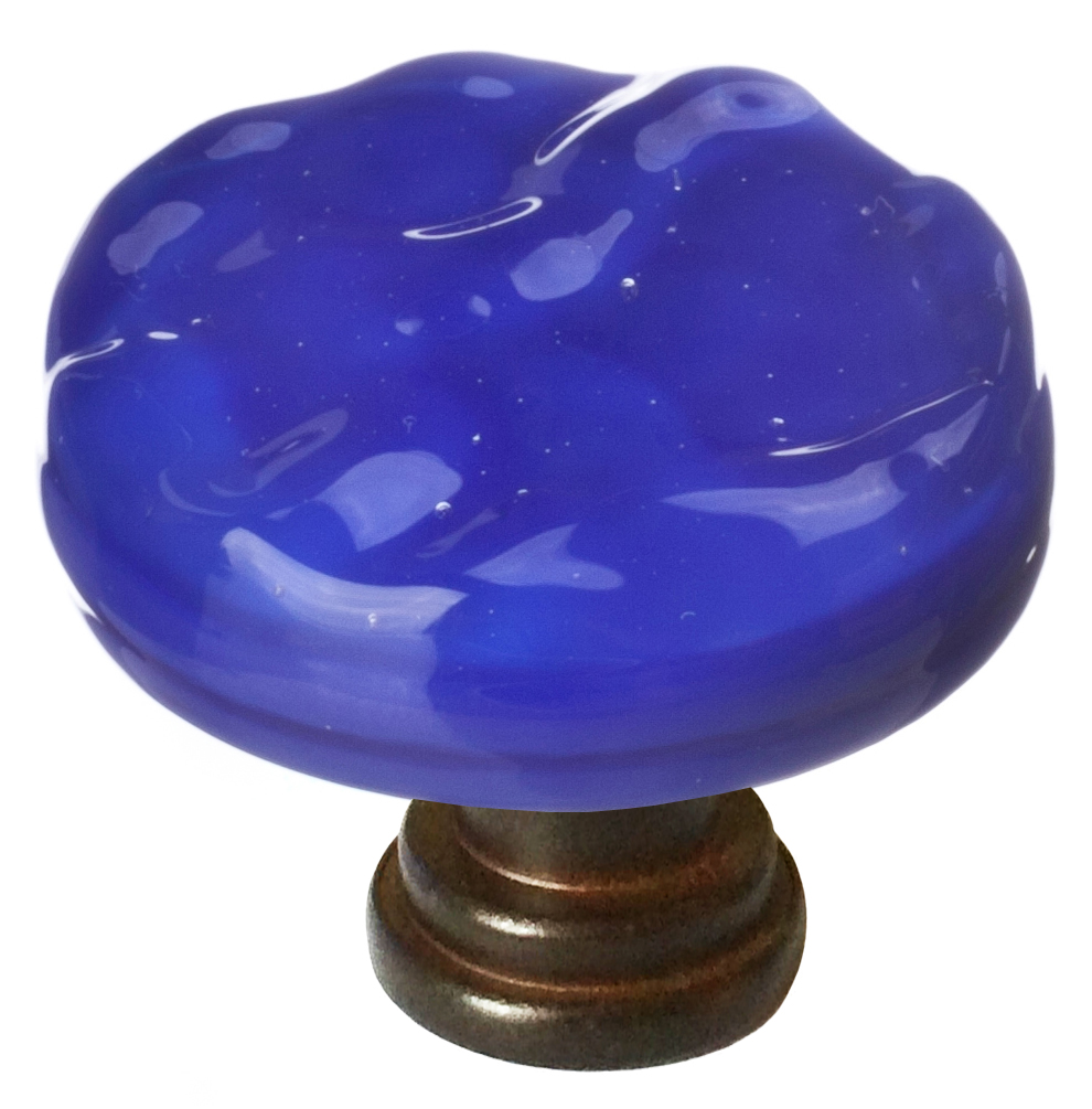 Sietto R-221-ORB Glacier cobalt round knob with oil rubbed bronze base showcases the perfect blend of artistry and functionality. This stunning knob features Sietto's signature rippled glass, which captures and refracts light in a mesmerizing way, reminiscent of moving water. The captivating cobalt color offers a bold statement that can transform any cabinetry into a focal point, making it an ideal choice for kitchens, baths, bars, and built-in cabinetry. With a diameter of 1-1/4 inches and a projection of 1 inch, the Glacier knob is designed for comfortable handling while adding a touch of elegance to your space. The oil rubbed bronze base complements the vibrant cobalt glass, creating a harmonious contrast that enhances both traditional and contemporary interiors. Versatile in style, the Glacier collection includes a variety of colors and profiles, such as the delicately designed Skinny Glacier, allowing you to choose the perfect hardware statement that matches your design vision. Crafted from high-quality glass, this knob not only elevates aesthetic appeal but also ensures durability and longevity. Ideal for both residential and commercial projects, the Sietto Glacier knob is a practical choice that ships via UPS within 1-2 weeks, ensuring your design plans remain on schedule. Elevate your spaces with the Glacier cobalt round knob, where timeless craftsmanship meets modern design, making it a perfect addition to your hardware collection.